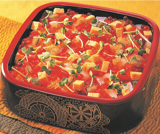 全国の産地から、その季節ならではのネタを揃えた「旬の寿司」や、厳選した9種類のネタを贅沢に使用した柿家すし名物「きりこみばら寿司」など、食卓やお集まりの場を華やかに演出しています。昨年、フードデリバリーモール『ごちクル』“上半期人気ランキング2021”関東地区の寿司部門で2年連続1位に選ばれました。