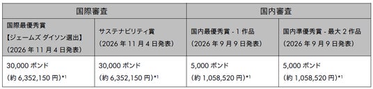 選考を通過した応募作品は、デザインおよびエンジニアリングの専門家、そしてダイソンエンジニアで構成される各国審査委員によって審査されます。国内最優秀賞受賞者には5,000ポンド(約1,058,520円)*¹が贈られ、さらに国際選考へ進みます。ジェームズ ダイソンによって選出される国際最優秀賞には30,000ポンド(約6,352,150円)*¹が授与され、発明を次のレベルへ進めるための大きな機会が与えられます。このアワードは、受賞者にメディア露出や国際的な評価を得る機会を提供し、若い発明家たちが自身のアイデアを商業化へと加速させるための後押しとなります。