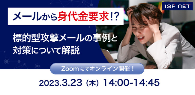 ITインフラソリューションを中心に、クラウド環境や、ネットワークシステムの構築・保守・運用におけるサービスを提供する、株式会社アイエスエフネット(本社:東京都港区、代表取締役:渡邉幸義、社員数:2,497名)は、2023年3月23日(木)の日程にて、「メールから身代金要求!?標的型攻撃メールの事例と対策について解説」ウェビナーを開催いたします。