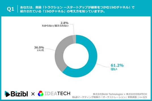 ウェビナーマーケティングツール「Bizibl(ビジブル)」を提供する株式会社Bizibl Technologies(本社:東京都千代田区、代表取締役CEO:花谷燿平、以下Bizibl)は、株式会社IDEATECHと共同で、BtoBマーケティングに携わる責任者・担当者325名を対象に、「BtoBマーケティング施策のオーケストレーション実態調査」を実施しました。