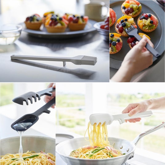 シリコーン製で滑りにくく熱に強いハケとトング。