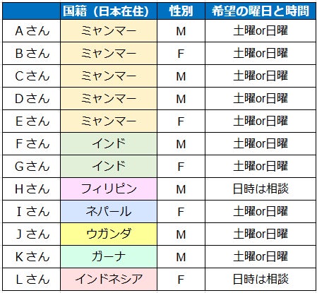 今回の記念すべき「日本語トークセッション」(1期)では、ミャンマー人、インド人、フィリピン人、ネパール人、ウガンダ人、ガーナ人、インドネシア人の合計12人がエントリー。