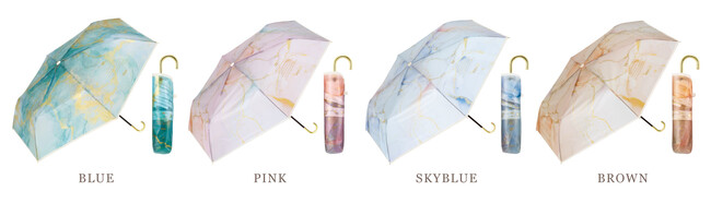 2023年8月に発売した人気のインクアートアンブレラに新色”スカイブルー”と”ブラウン”を追加し、全4色の豊富なカラーバリエーションとなりました。折りたたみ傘は全色初登場。