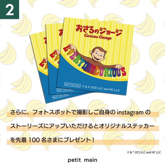 ぜひプティマインとおさるのジョージのスペシャルアイテムを着て、特別なフォトスポットで思い出作りをしてくださいね。