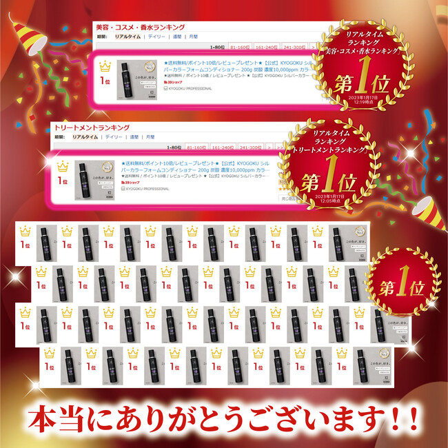 株式会社kyogokuが展開する美容ブランド「KYOGOKU PROFESSIONAL」で人気の「KYOGOKU シルバーカラーフォームコンディショナー」が楽天の人気ランキングで35冠を達成いたしました!