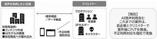 <AI音声活用における権利保護とビジネス展開のイメージ(現在)>
