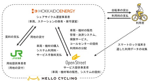 ※北海道エネルギーは、OpenStreet株式会社(本社:東京都港区、代表取締役社長CEO:工藤 智彰、以下「OpenStreet」)が提供するシェアサイクルプラットフォーム「HELLO CYCLING」を活用したシェアサイクルサービスを、2024年度から北海道内で展開しています。