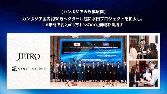 ネイチャーベースのカーボンクレジット創出・販売事業を展開するGreen Carbon株式会社(代表取締役:大北潤、以下:Green Carbon(読み:グリーンカーボン))は、JETRO主催のカンボジアにおけるカーボンクレジット創出を目的とした農業プロジェクト「JETRO Cambodia Frontier market Green Business Project Event、以下:本プロジェクト」に参画し、カンボジア国内の長期的な事業展開を発表したことをお知らせします。