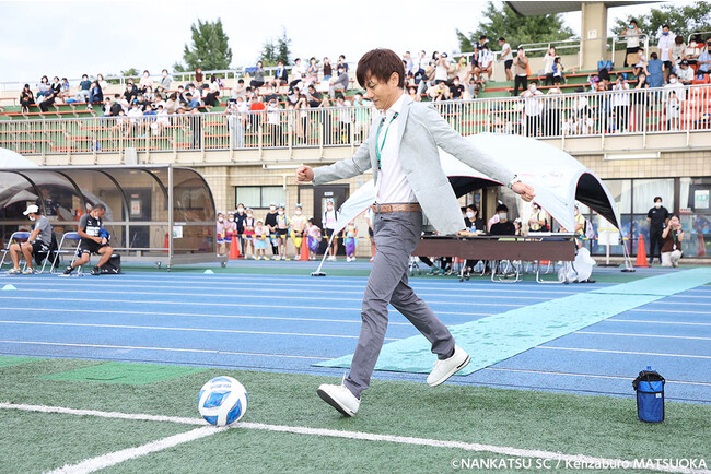試合は、後半35分を過ぎたあたりに、南葛SC左サイドの下平選手からのクロスに途中出場の岡田選手が豪快に飛び込んで合わせて、見事なゴール。その勢いのままに南葛はさらに攻勢を強めました。勝ち越すべく果敢にゴールを狙う白熱した試合が繰り広げられました。結果は、惜しくも引き分けでしたが、観客は大いに盛り上がりました。