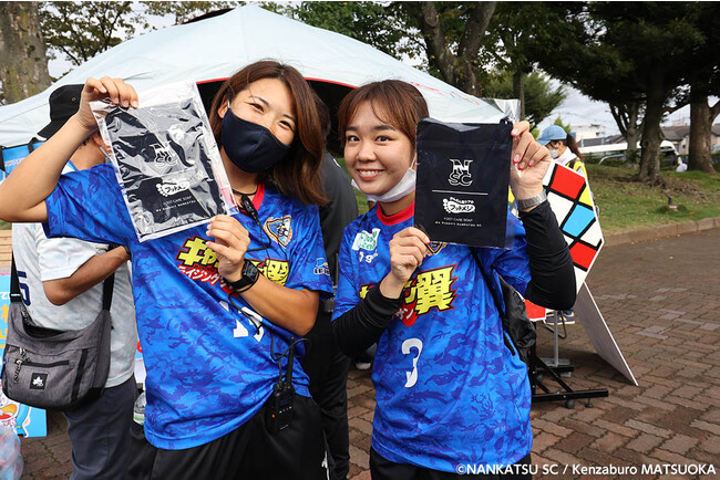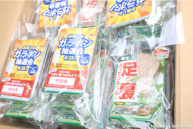 2022シーズン、トップチーム練習着にロゴを掲出している「フットメジ」のフットソープを、ご来場者さまに配布いたしました。