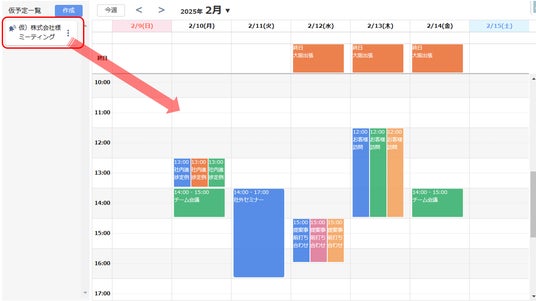 2. 予定を確認しながら候補日を作成します。 仮押さえしたい日時へ仮予定をマウスでドラッグ&ドロップします。