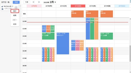 確定したい仮予定の三点リーダーをクリックし、[確定]ボタンをクリックします。