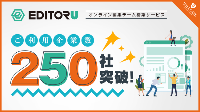 株式会社ウィルゲート(本社:東京都港区、代表取締役:小島 梨揮、以下 ウィルゲート)が運営するオンライン編集チーム構築サービス「エディトル」は、利用企業数が250社を突破したことをお知らせいたします。また、利用企業数250社突破を記念して、初期費用を頂く前にお試し利用できるキャンペーンを9月30日(金)までの期間限定で実施いたします。