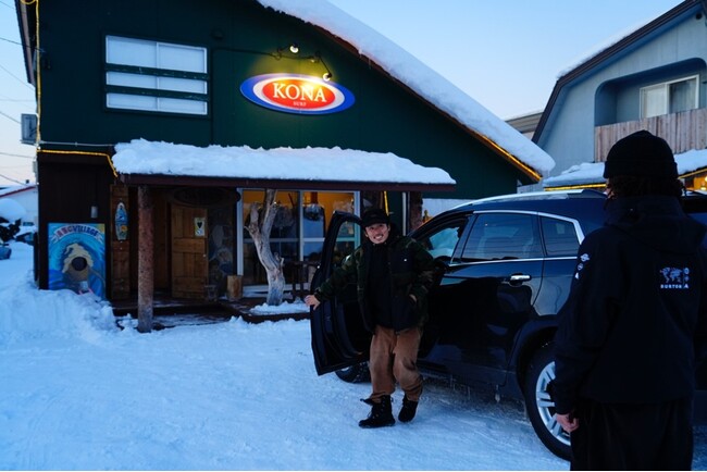 コアなスノーボーダーが集まる旭川のスノーボードショップ「KONA SURF」に到着。