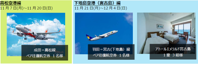 下地島空港(宮古島)編の場合は、スカイマーク【公式】Twitterと偏愛旅行社【公式】Twitterを