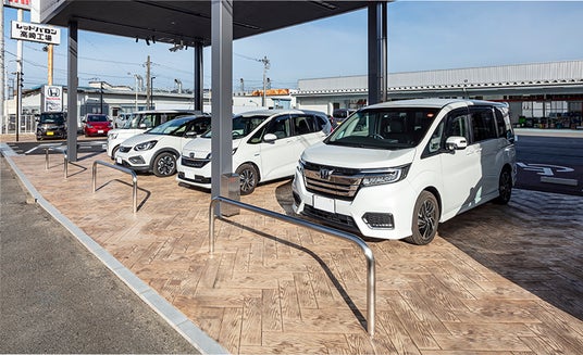 デザインクリートは完全に硬化する前のコンクリートに2種類のカラー材を散布し基本色と陰影色を付けたのち、パターンマット(押し型)を押し当て表面に立体感を生み出します。基礎コンクリートに直接施工することで、工期短縮の実現と高耐久性で滑りにくい床を形成することが特長です。