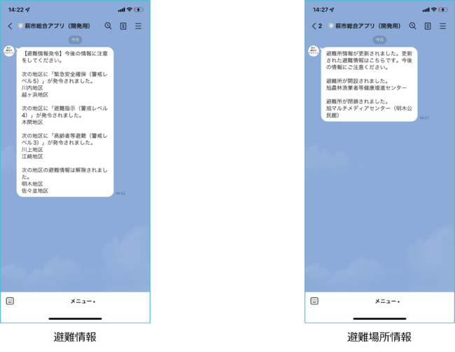 この度PHONE APPLIはこの課題を解決するべく、「PHONE APPLI LINER」をベースとした「はぎなび」と防災システムを連携する機能を開発しました。「はぎなび」は2021年4月1日の正式リリース以降、多くの萩市民にご登録いただいており、道路等をはじめとする問題箇所の報告や萩市民への情報提供、ワクチン接種予約システムの連携等、萩市と萩市民の新たな接点として活用されてきました。今回の機能リリースを通じて、萩市が防災関連情報を萩市民へ適切なタイミングで発信し、萩市民がその情報を必要なタイミングで取得できるようになります。
