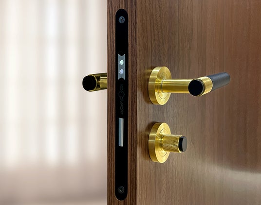 開発にあたってはユーザーに高級感と安心感を提供したいと考え、世界基準の厚さ4.5cm(一般的な日本の室内ドアの厚みは3~3.6cm)にしたほか、付属のレバーハンドルや錠もドイツ製のものを採用し、堅牢なデザインに統一しました。