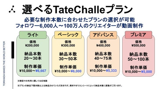 クリエイターDXカンパニーである株式会社TORIHADA(本社:東京都渋谷区、代表取締役社長:若井 映亮)は、縦型広告クリエイティブ制作サブスクリプションサービス「TateChalle(タテチャレ)」を2025年3月より開始いたします。