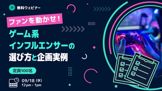 株式会社GameWith(本社:東京都港区、代表取締役社長:今泉卓也、以下「当社」)は、無料オンラインセミナー『ファンを動かせ!ゲーム系インフルエンサーの選び方と企画実例』を2024年9月18日(水)12時より開催いたします。