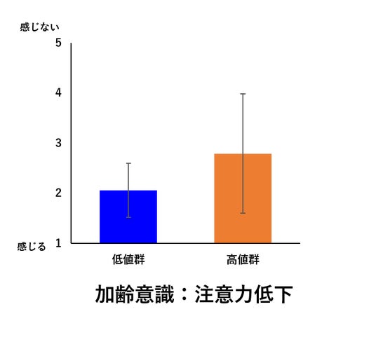 左図について:「注意力が散漫したと感じますか?」との問いに対し、入浴で体温を高めている群が感じていないことを意味しています。