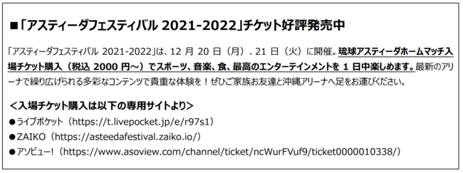 ~ 「アスティーダフェスティバル」 12/20(月)、21(火)沖縄アリーナにて ~