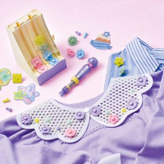 「ねじハピ ステッキドライバーDIYセット」では、 魔法のステッキのようなデザインの手動ドライバーを使って、自分だけのかわいい”えり”をデザインすることができます。付属のぽんぽんチェストが、手動ドライバーならではの”ぽんっ♪”とリズミカルな組み立てをサポート。今日の気分やお洋服に合わせて気軽にスタイルチェンジできるから、気分はデザイナー!ファッションDIYであなたの夢を叶えよう!