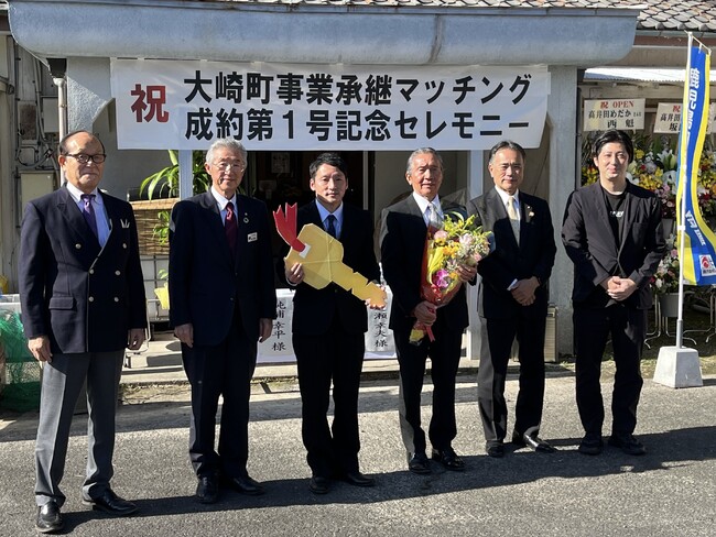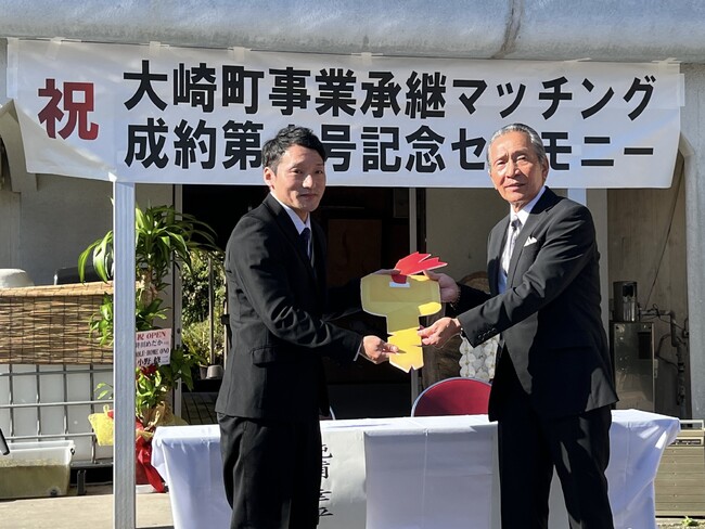 このたび、第1号の成約があったことを記念し、セレモニーを行うと共に、跡継ぎ探しを躊躇されている事業者の後押しをすることで、町の商工業の更なる活性化を図り、今回の成約を機にマッチング支援をさらに加速してまいります。