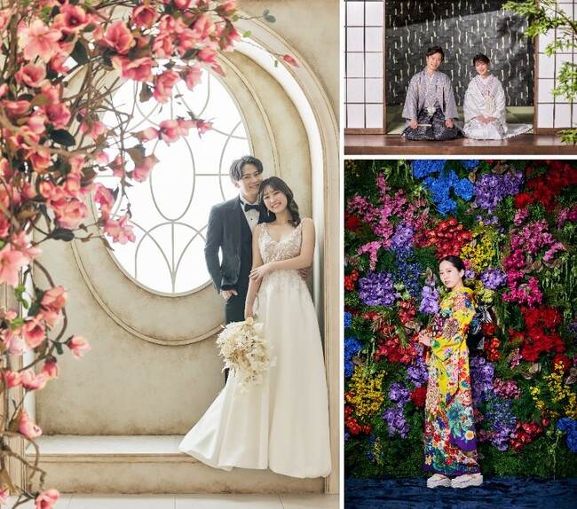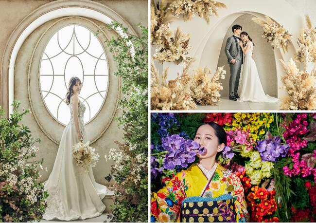 韓国フォトのようなドラマティックな撮影からナチュラルスタイル、艶やかなフラワーウォールまで、多彩な撮影を叶えます。