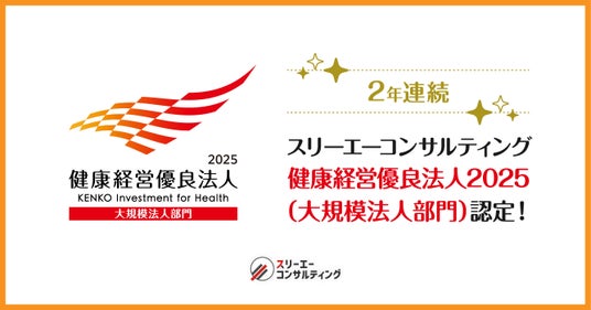 ISO・Pマーク支援実績数全国No.1※のISO/Pマークの取得・運用支援サービス「認証パートナー」を提供する株式会社スリーエーコンサルティング(本社:大阪府大阪市、代表取締役社長:竹嶋 寛人)は、経済産業省が定める『健康経営優良法人2025(大規模法人部門)』に認定されました。当社では、健康診断の受診率100%、受診勧奨の取り組みや有給休暇の消化率100%などの取り組みを行っております。今後も従業員とご家族の健康保持 ・増進のために取り組みを続けてまいります。