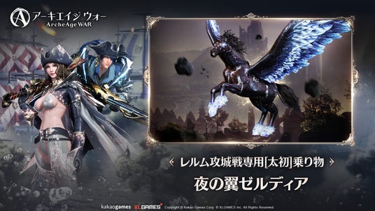 「レルム攻城戦」は「アーキエイジ ウォー」で初の連合同士の戦争で、複数のギルドで構成された連合が陸と海の両方の戦場で敵連合と争い、玉座を勝ち取るコンテンツだ。勝利を勝ち取った連合は、ゲーム内の最高等級である[太初]乗り物「夜の翼ゼルディア」を召喚できるチャンスを得られる。