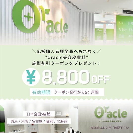 すべての応援購入者様対象に日本全国に店舗を展開している韓国から進出した「Oracle美容皮膚科」の8,800円分の割引クーポンをプレゼント!