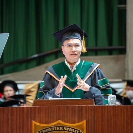 栗本博行学長の式辞では「名商大とは何か」「MBA教育」「幸せのあり方」の3つのテーマについて述べられ、1953年開学以来一貫して実学教育を提供し、ケースメソッド教育や海外提携校、リーダー教育と、常に開拓者精神を追求し社会に貢献する使命を実現してきた本学では、正しい「答え」ではなく正しい「問い」を導くこと、正解を選択する方法ではなく選択を正解にする姿勢が大切であると語られました。