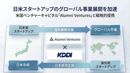 両社が日本で探索する、海外展開を目指す日本発スタートアップに対し、KDDIとの共創を通じて事業成長を支援します。さらに、Alumni Venturesによる米国トップクラスの大学を起点とした豊富な人脈提供や起業家育成など、多くのユニコーン企業を創出してきた投資先支援力と資本提供により、グローバル市場への事業展開を支援します。