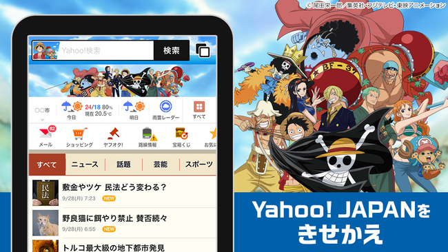ヤフー株式会社(以下、Yahoo! JAPAN)は本日、TVアニメ『ONE PIECE』とのコラボレーション企画 「Yahoo!きせかえ『ONE PIECE』コラボ特集」(以下、本特集)を公開しました。