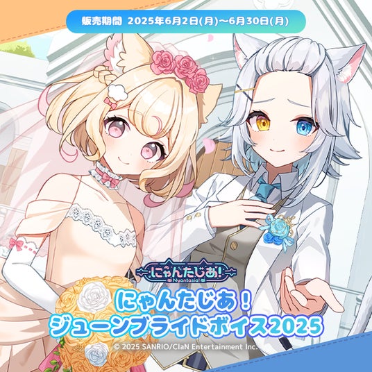 株式会社ClaN Entertainment(本社:東京都港区、代表取締役社長:大井 基行)は、株式会社サンリオ(本社:東京都品川区、以下サンリオ)と共同で行うVTuberプロジェクト「にゃんたじあ!」において、「にゃんたじあ!ジューンブライドボイス2025」を2025年6月2日(月)19:00から2025年6月30日(月)23:59までの間、公式BOOTHにて販売することをお知らせします。