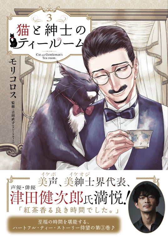 『猫と紳士のティールーム』第3巻 が2月20日に発売された。声優、俳優、映画監督など幅広く活躍する津田健次郎さんが推薦を寄せており、「紅茶香る良き時間でした。」とコメントしている。