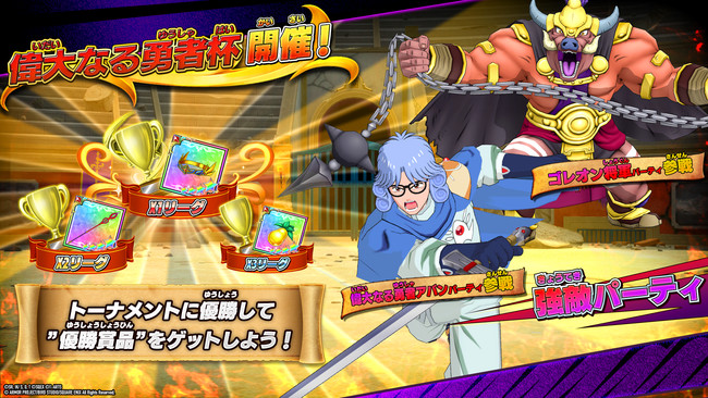 「トーナメントモード」では新たに「偉大なる勇者杯」トーナメントが開放されます。「偉大なる勇者杯」トーナメントは「偉大なる勇者アバン」が率いる強敵パーティが参戦する期間限定のトーナメントで、優勝すれば「アバンの冠」といった“優勝賞品”をゲットすることができます。開催期間は2022年3月24日から「真3弾」終了までとなっています。