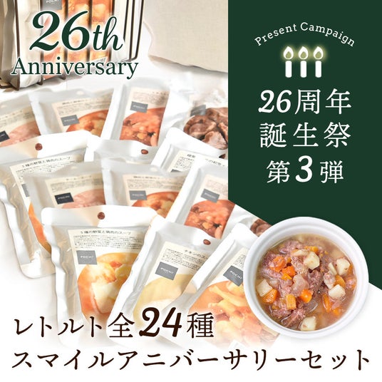 ・『POCHI誕生祭』第3弾。レトルト全24種が楽しめる「スマイルアニバーサリーセット」が登場