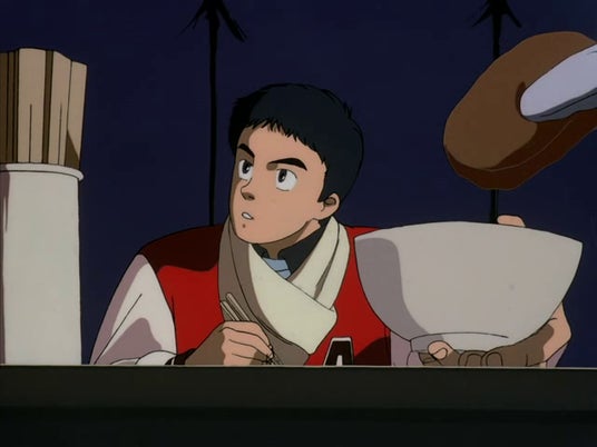 アーリーデイズ(初期OVA)第5話『二課の一番長い日(前編)』より コロッケそばを注文する遊馬