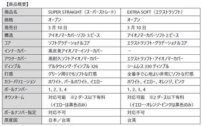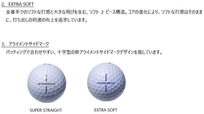 ブリヂストンスポーツ株式会社は、ゴルファーの“まっすぐ飛ばしてスコアアップを狙いたい”というニーズに拘ったゴルフボール『SUPER STRAIGHT』と、全番手でソフトな打感を追求したゴルフボール『EXTRA SOFT』を3月10日に発売します。価格はオープンです。