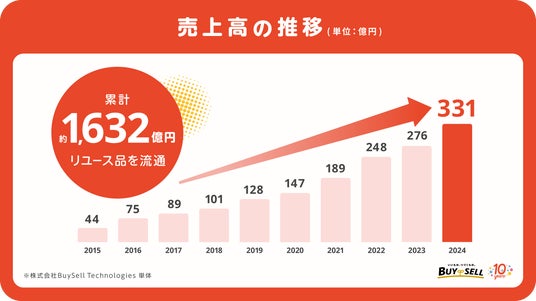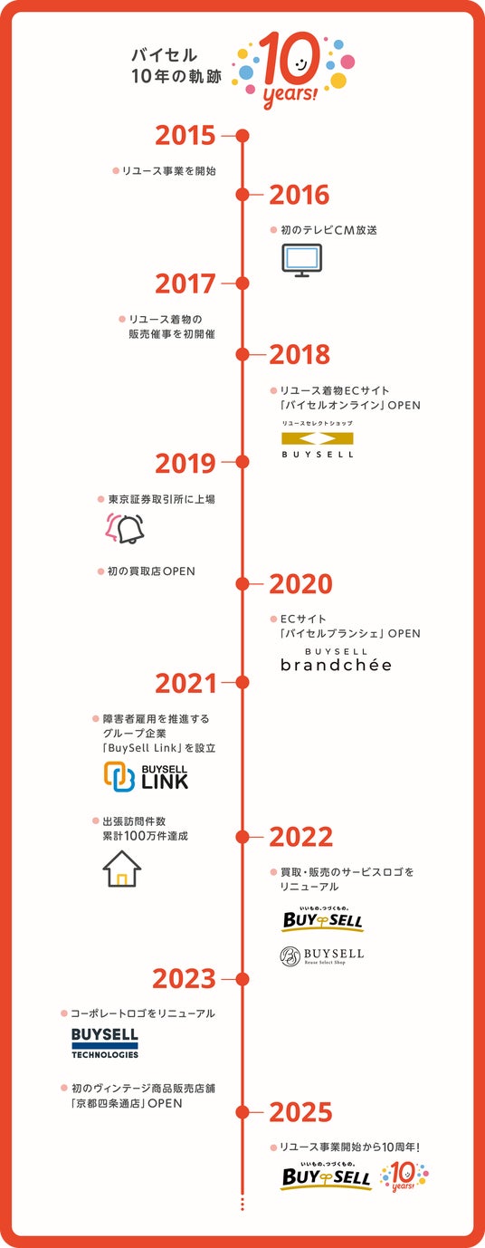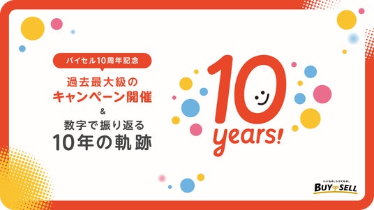 株式会社BuySell Technologies(本社:東京都新宿、代表取締役社長兼CEO:徳重 浩介)は、2025年4月1日に、リユースサービスの提供開始から10周年を迎えます。これまでの感謝の気持ちを込めて、買取・販売の双方で過去最大級のキャンペーンを展開するとともに、この10年間を振り返るグラフィックを公開いたします。
