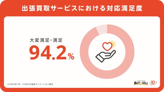 査定後のお客様アンケートで、「満足」「大変満足」とお答え頂いた方は94.2%。すべての査定士が徹底した研修を受け、お客様に安心してご利用いただける対応を心がけています。