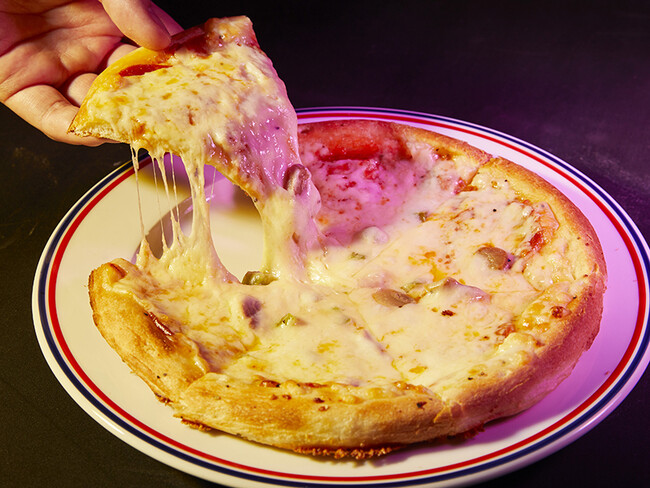 厚めのもっちりした生地にピーマン、サラミ、マッシュルームをのせ、溢れんばかりのたっぷりチーズをトッピングして焼き上げました。