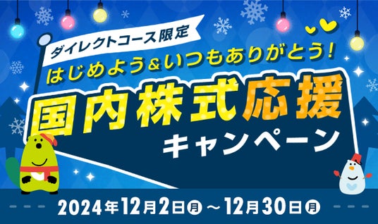 SMBC日興証券は12月2日(月)より「【ダイレクトコース限定】はじめよう&いつもありがとう!国内株式応援キャンペーン」を実施いたします。