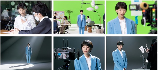 オフィスシーンの撮影では、セットの中で他の人がいる状況での撮影も1カットありましたが、ほとんど全編CGで構成されています。撮影用のグリーンバックを背景に、セットも小道具もなく、夏帆さんたった1人での撮影という状況で、監督からの状況説明と絵コンテから想像しながら行われました。どのような仕上がりになったのかは、ぜひ本編をご覧ください。