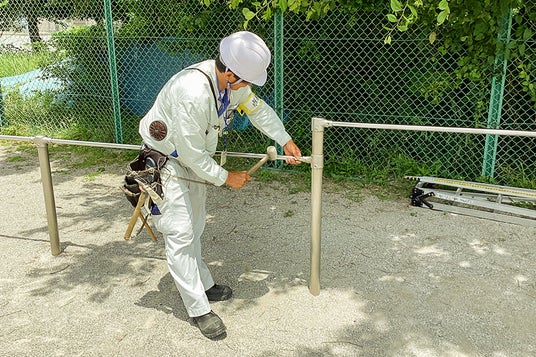 シンテン様は遊具施設・体育施設の総合メンテナンス企業です。自治体などからの依頼を受けて公園や公共施設、学校、保育園等に設置された遊具や体育器具などの保守点検・診断をおこなっています。