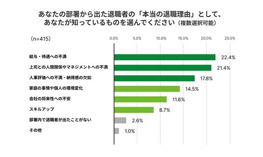 【2】部下が使いこなす「本音と建前」。退職理由の真偽をめぐり、管理職と一般社員で14.4ポイントの認識乖離