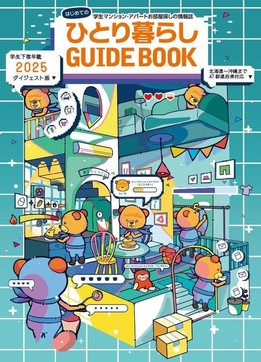 本コンペ1位作品は、「学生下宿年鑑2025ダイジェスト版 ひとり暮らしGUIDE BOOK」(11月15日発行予定)の表紙デザインに採用されます。本誌は全国の高校や当社グループのお部屋紹介店舗(UniLife)に設置され、毎年、多くの学生や保護者の方が手にします。