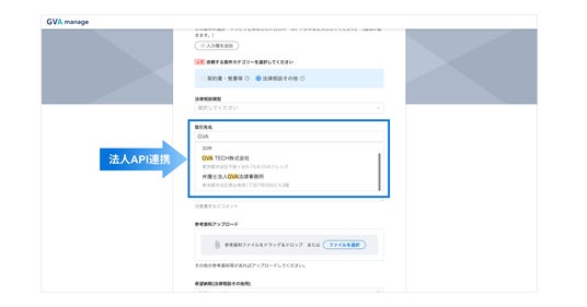 GVA TECH株式会社(本社:東京都渋谷区、代表取締役:山本 俊、以下GVA TECH)は、マターマネジメントシステム「GVA manage(ジーヴァ マネージ)」が、法人検索APIと連携し、取引先企業名をプルダウン方式で入力可能な機能をリリースしたことをお知らせします。